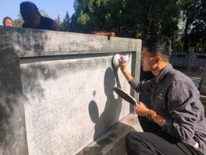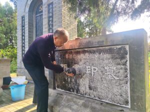2025年11月16日,新密市民间文艺家协会(民协)主席杨建敏、副秘书长张贺然一行,专程前往革命先驱张书印烈士墓地,开展为墓碑拓片的工作,以这种特殊的方式缅怀先烈,为地方历史研究留存珍贵的实物资料。