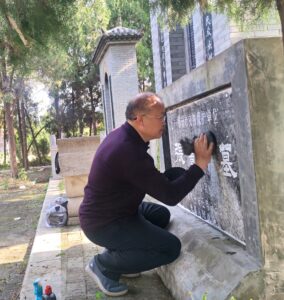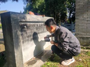 2025年11月16日,新密市民间文艺家协会(民协)主席杨建敏、副秘书长张贺然一行,专程前往革命先驱张书印烈士墓地,开展为墓碑拓片的工作,以这种特殊的方式缅怀先烈,为地方历史研究留存珍贵的实物资料。